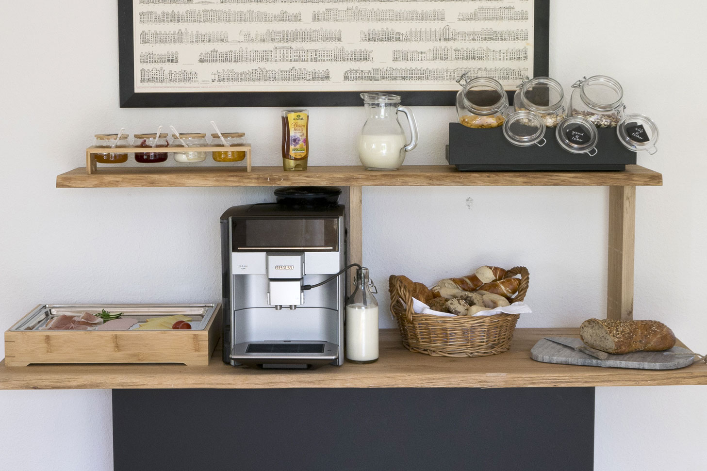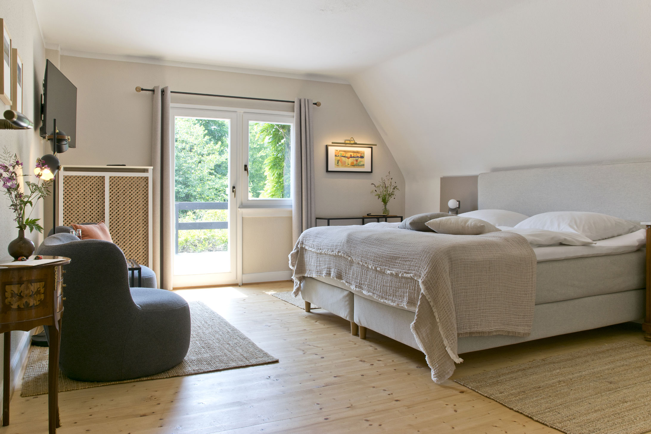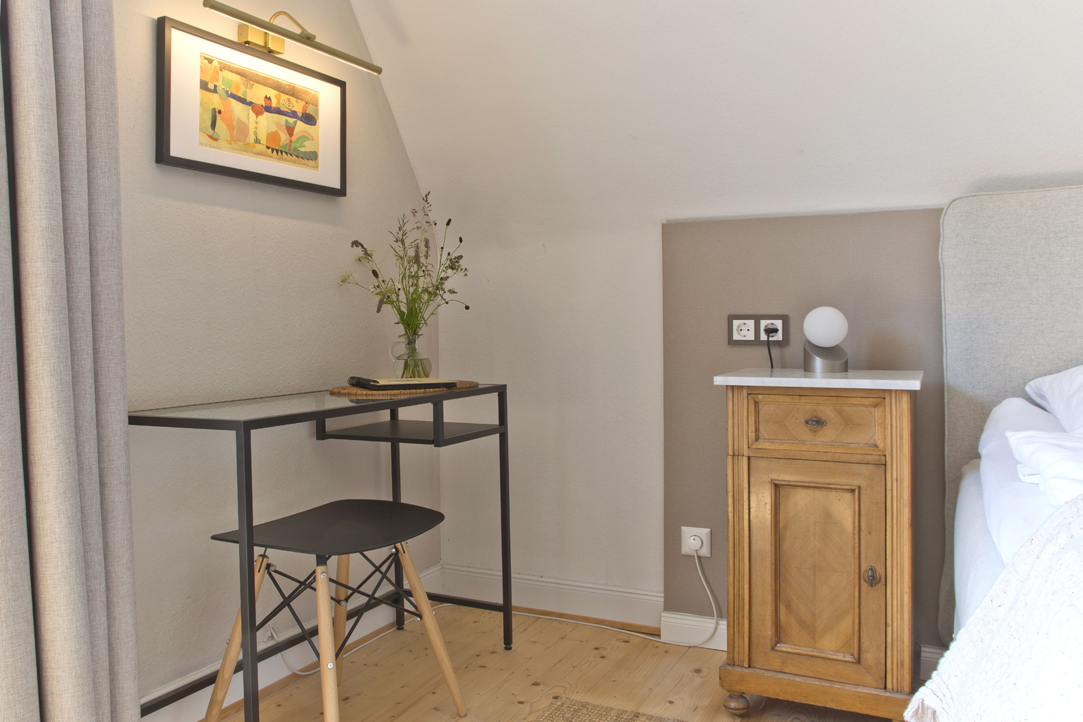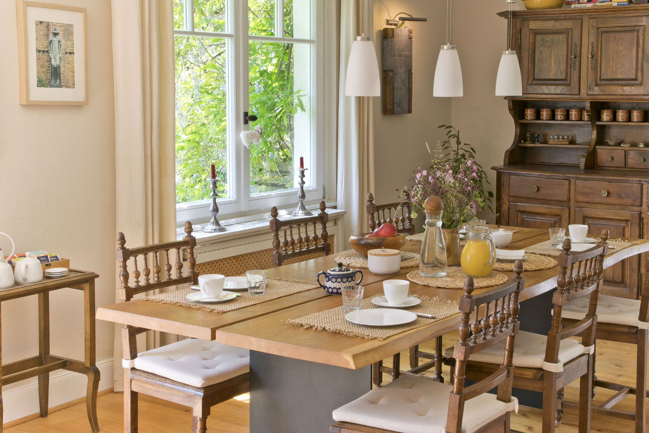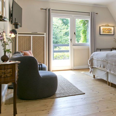 In ruhiger und zentraler Lage bieten wir zwei im Hotelstandard ausgestattete Gästezimmer an und servieren unseren Besuchern ein Frühstücksbuffet im Gartenzimmer.